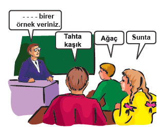 1) Yukarıdaki resimde öğrencilerin örnekleri doğru olduğuna göre öğretmen, öğrencilerden aşağıdakilerden hangisine örnek vermelerini istemiştir?