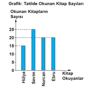 Yukarıdaki grafik, 4 arkadaşın tatilde okudukları kitap sayılarını göstermektedir: |