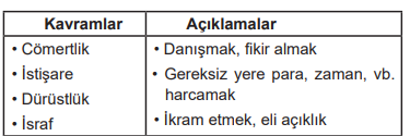 Açıklama:Soru bankası bölümümüzde bulunan "Bu tablodaki kavramlarla açıklamalar eşleştirildiğinde kavramlardan hangisi dışarıda kalır?" sorusu