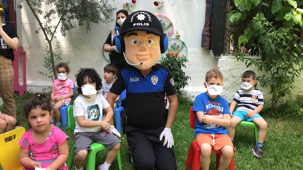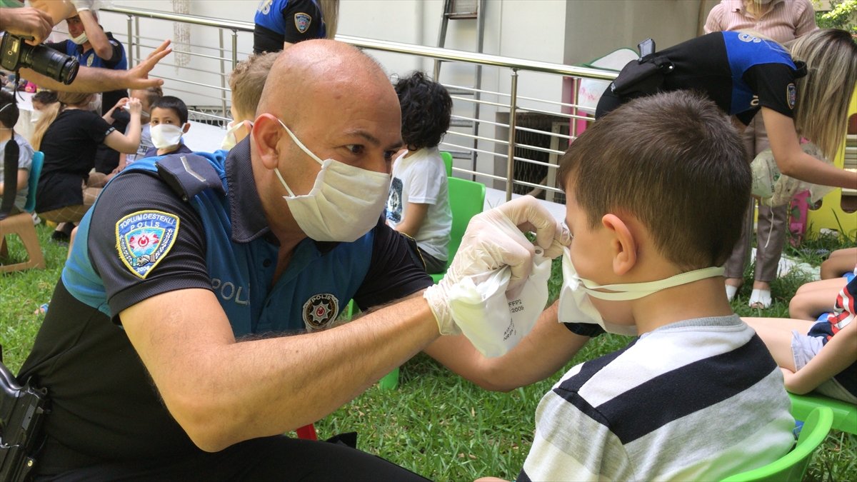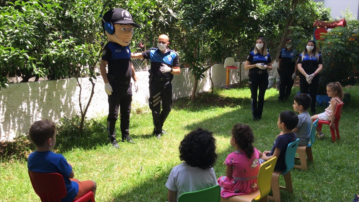 Adana İl Emniyet Müdürlüğü Toplum Destekli Polislik Şubesi ekipleri, kentteki özel bir anaokulunu ziyaret ederek çocuklarla bir araya geldi. Ekipler, ziyaret ettikleri çocuklara koronavirüsten korunmaları için alabilecekleri önlemleri anlattı. "Can polis" olarak adlandırılan "maskot" polisin de yer aldığı etkinlikte renkli görüntüler oluştu. Ekipler, çocuklara virüsten korunmaları için maske dağıtıp, polis şapkası ve üzerinde polis çıkarması bulunan anahtarlık hediye etti.
