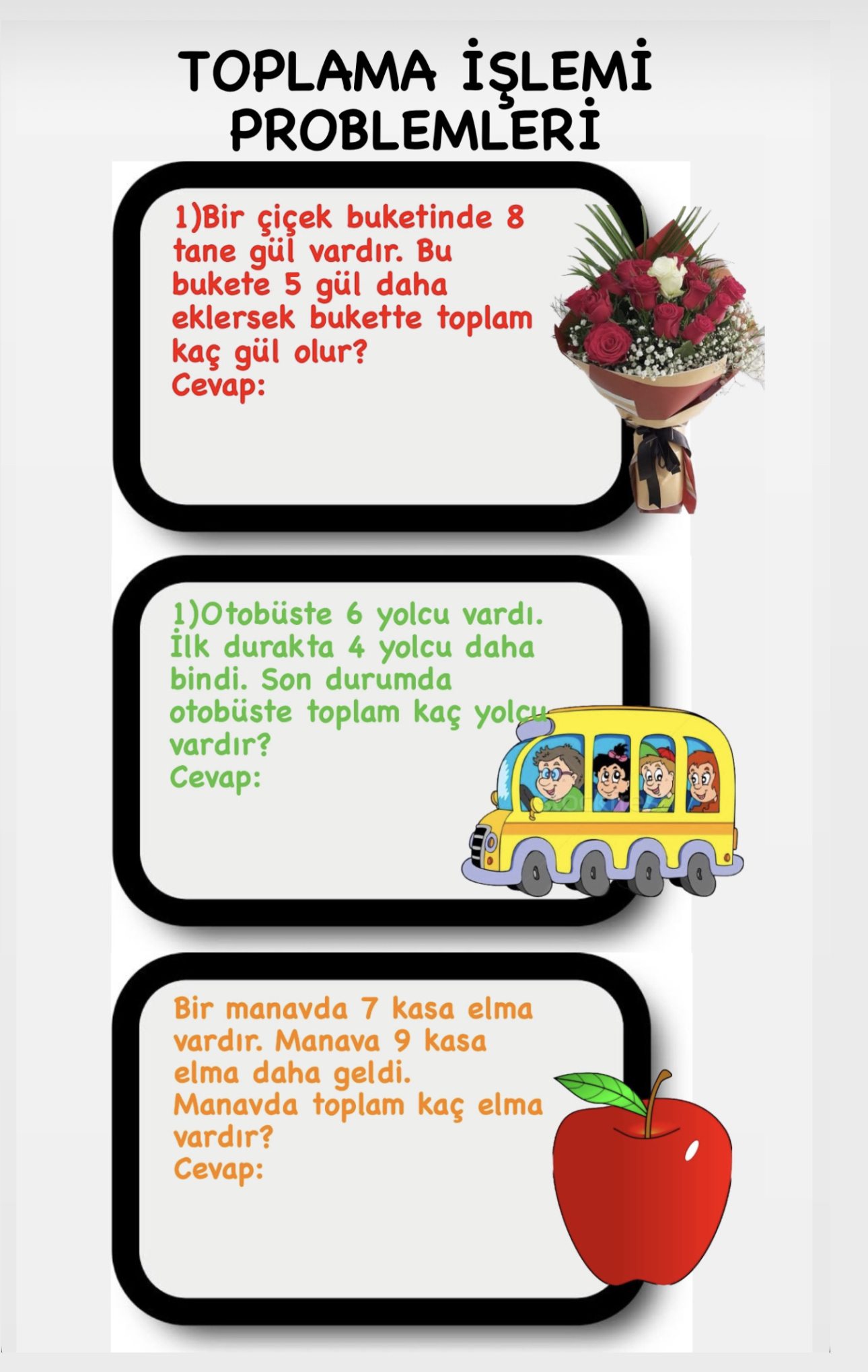 1.Sınıf Matematik Toplama Problemleri