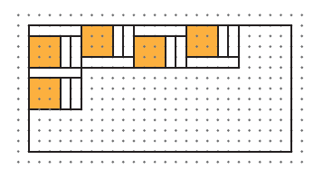 | Yukarıdaki şekilde gösterildiği gibi kenar uzunlukları 2 cm ve 4 cm olan dikdörtgen şeklindeki bir kâğıt, kenar uzunluğu 1 cm olan kare şeklindeki renkli kartonlarla kaplanacaktır. | 12) Yukarıda açıklanan çalışma için kaç tane renkli karton kullanmak gerekir?