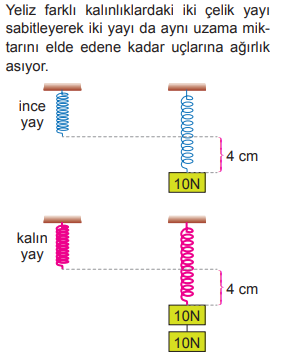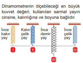 10) Buna göre dinamometrelerde ölçülecek kuvvet değerinin yayın kalınlığına