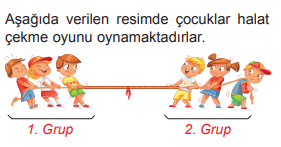 14) Halat çekme oyununu 1. gruptaki öğrenciler kazandığına göre aşağıdaki