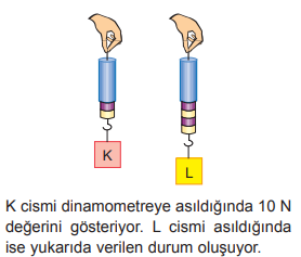 15) Buna göre L cismi asıldığında dinamometre kaç N gösteriyordur?