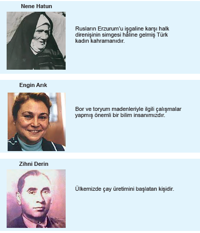 A) Geçimlerini tarımla sağlamaları B) Millî Mücadele hareketine katılmış olmaları C) Önemli buluşlar yapan bilim insanı olmaları D) Ülkemize hizmet eden önemli kişiler olmaları