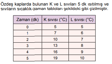 Tablodaki verilere göre; kaplarda bulunan sıvılarla ilgili,