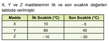 A) X, ısı almış B) Y, ısı vermiş C) Z, ısı almış D) Z’nin sıcaklığı artmış