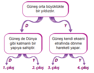 | 96) Verilen tanılayıcı dallanmış ağaçta yukarıdaki ifadeden başlanarak “Doğru (D)” ya da “Yanlış (Y)” yönünde ilerlenirse, kaç numaralı çıkışa ulaşılır?