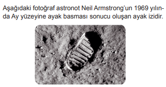 | Bu ayak izinin günümüze kadar hiç bozulmadan kalmasına; I. Ay’ın şeklinin küresel olması, II. Ay’da yağmur ve rüzgâr olaylarının oluşmaması, III. Ay yüzeyinde bulunan toz tabakasının sabit olması | 90) durumlarından hangileri sebep gösterilebilir?